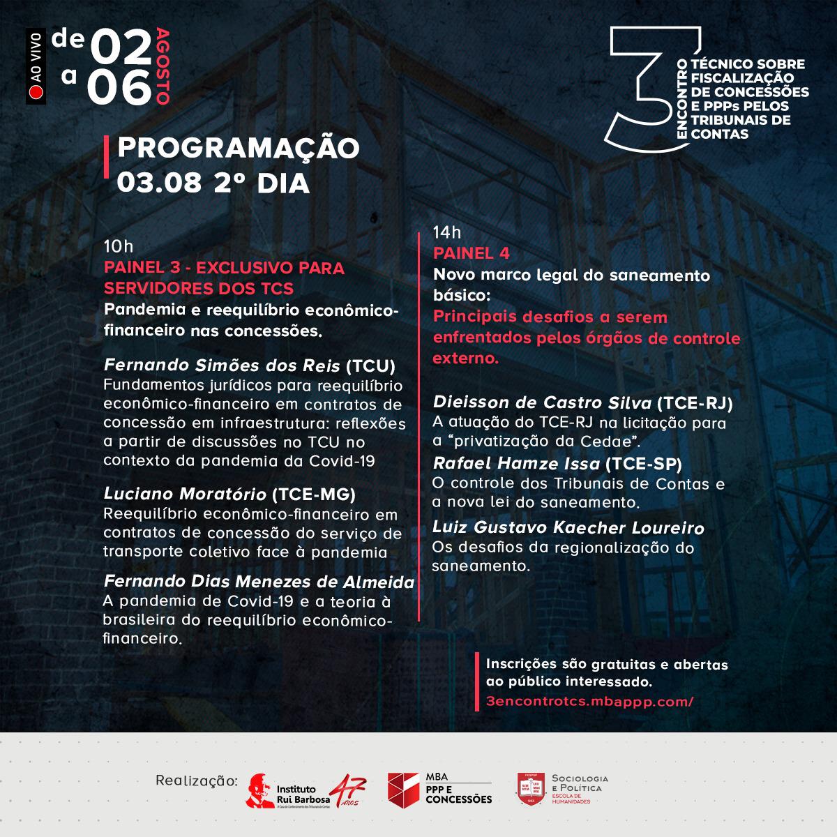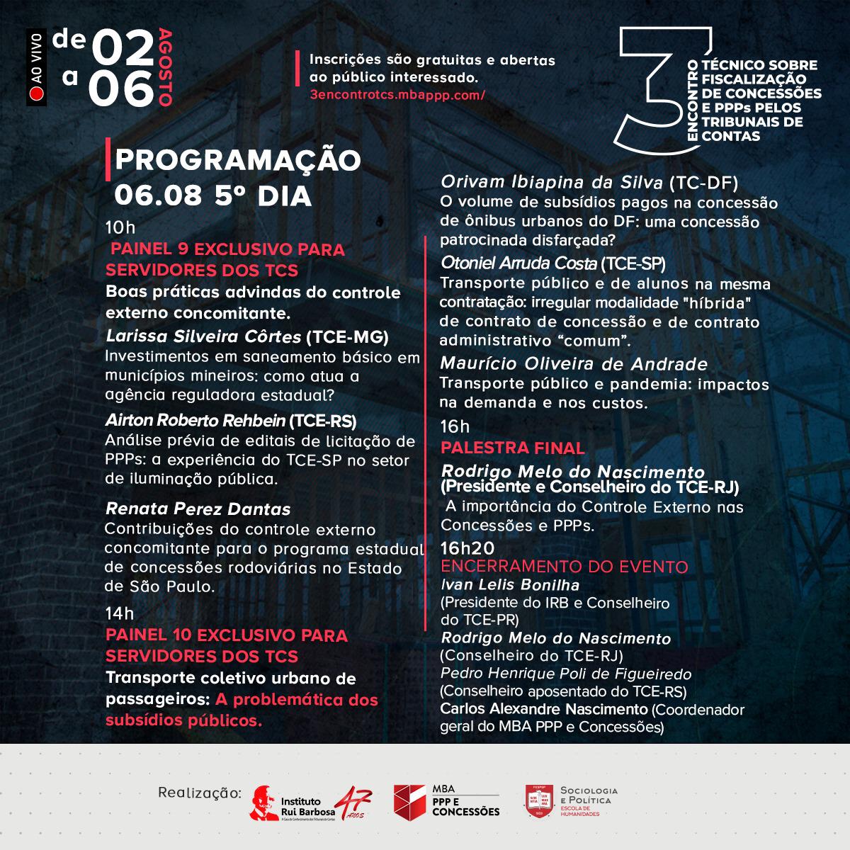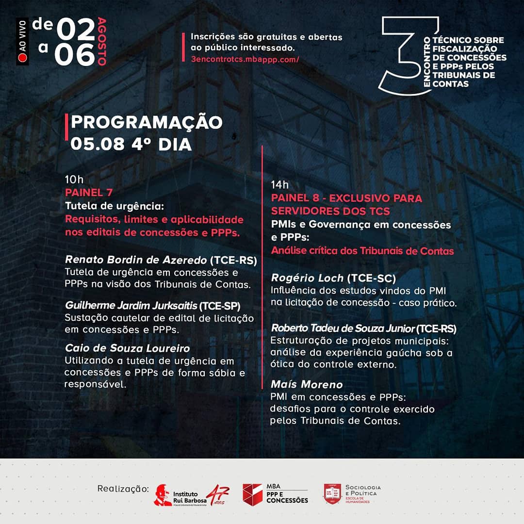 O Encontro é uma realização do Instituto Rui Barbosa em parceria com o MBA PPP e Concessões e a Sociologia e Política – Escola de Humanidades.