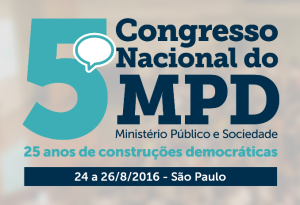 O 5.º Congresso Nacional do Ministério Público Democrático (MPD) ocorrerá entre os dias 24 e 26 de agosto de 2016 e contará com diversos conferencistas e convidados, entre eles os Presidente e vice Presidente da Associação Nacional do Ministério Público de Contas, Diogo Roberto Ringenberg (MPC-SC) e Júlio Marcelo de Oliveira (MPC-TCU).