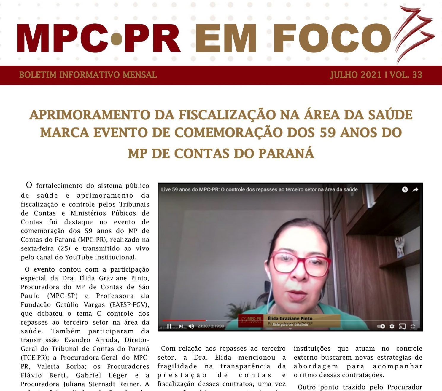 A edição do Boletim MPC-PR em Foco de julho traz em destaque as notícias: Aprimoramento da fiscalização na área da saúde marca evento de comemoração…