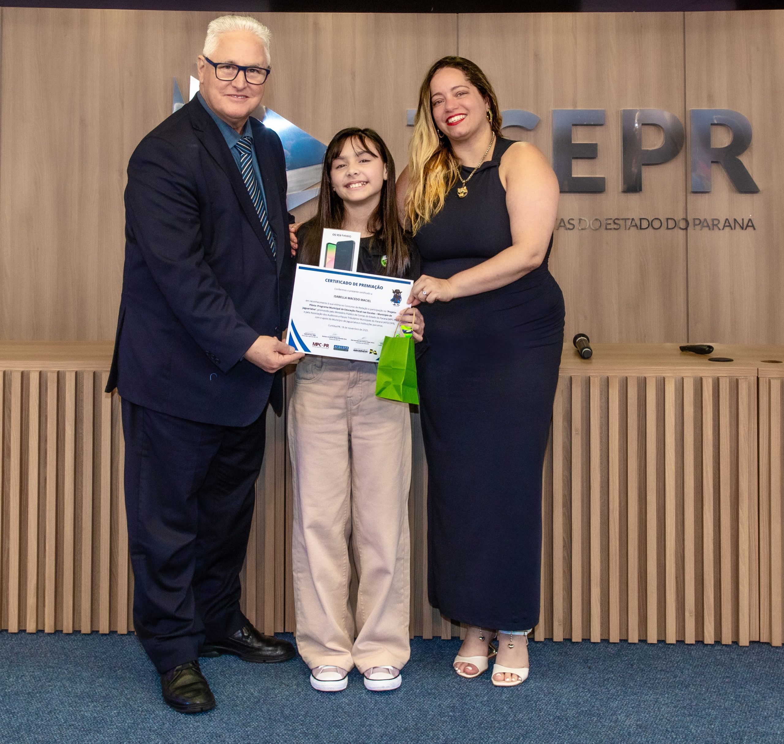 - O Programa Municipal de Educação Fiscal de Jaguariaíva, na pessoa do Prefeito José Sloboda, pelo protagonismo em levar a pauta tributária para o cotidiano dos estudantes.