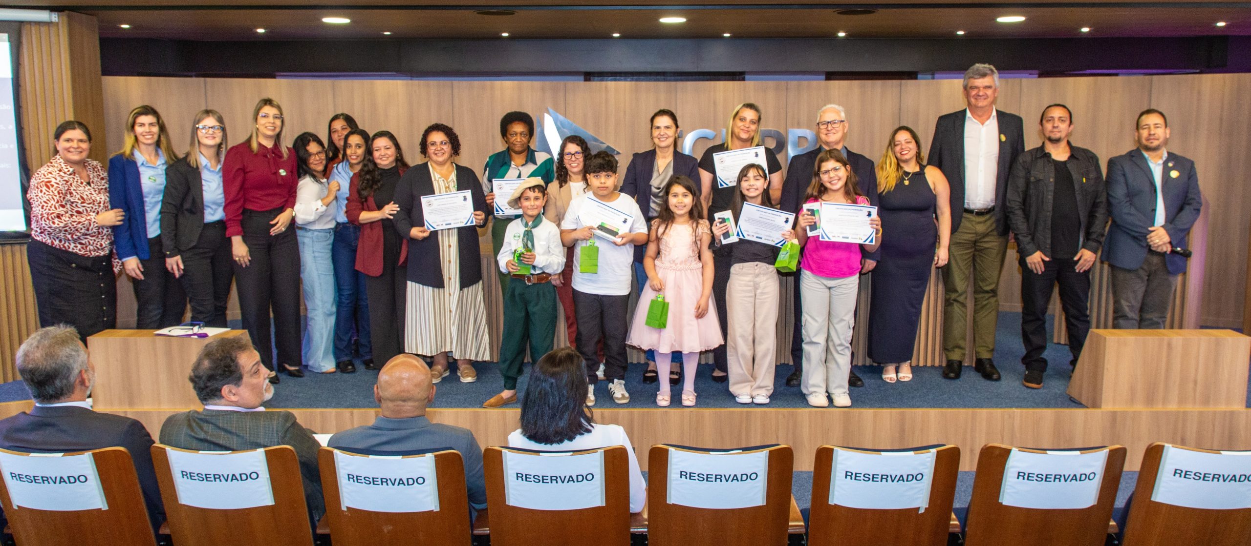 O evento ocorreu no Auditório do Tribunal de Contas do Estado do Paraná (TCE-PR) e também foi transmitido pelo canal do MPC-PR no YouTube, permitindo que pais, professores e gestores municipais acompanhassem a solenidade à distância.
