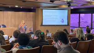 Durante sua apresentação, a Dra. Rosa Fátima abordou a importância da formação de grupos municipais de educação fiscal como estratégia para fortalecer a cidadania e promover a compreensão da função social dos tributos. Por sua vez, a Dra. Marta Gambini, compartilhou experiências relacionadas à coordenação do Programa Nota Paraná, enfatizando o papel da emissão de notas fiscais como instrumento de cidadania e controle social.